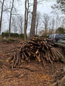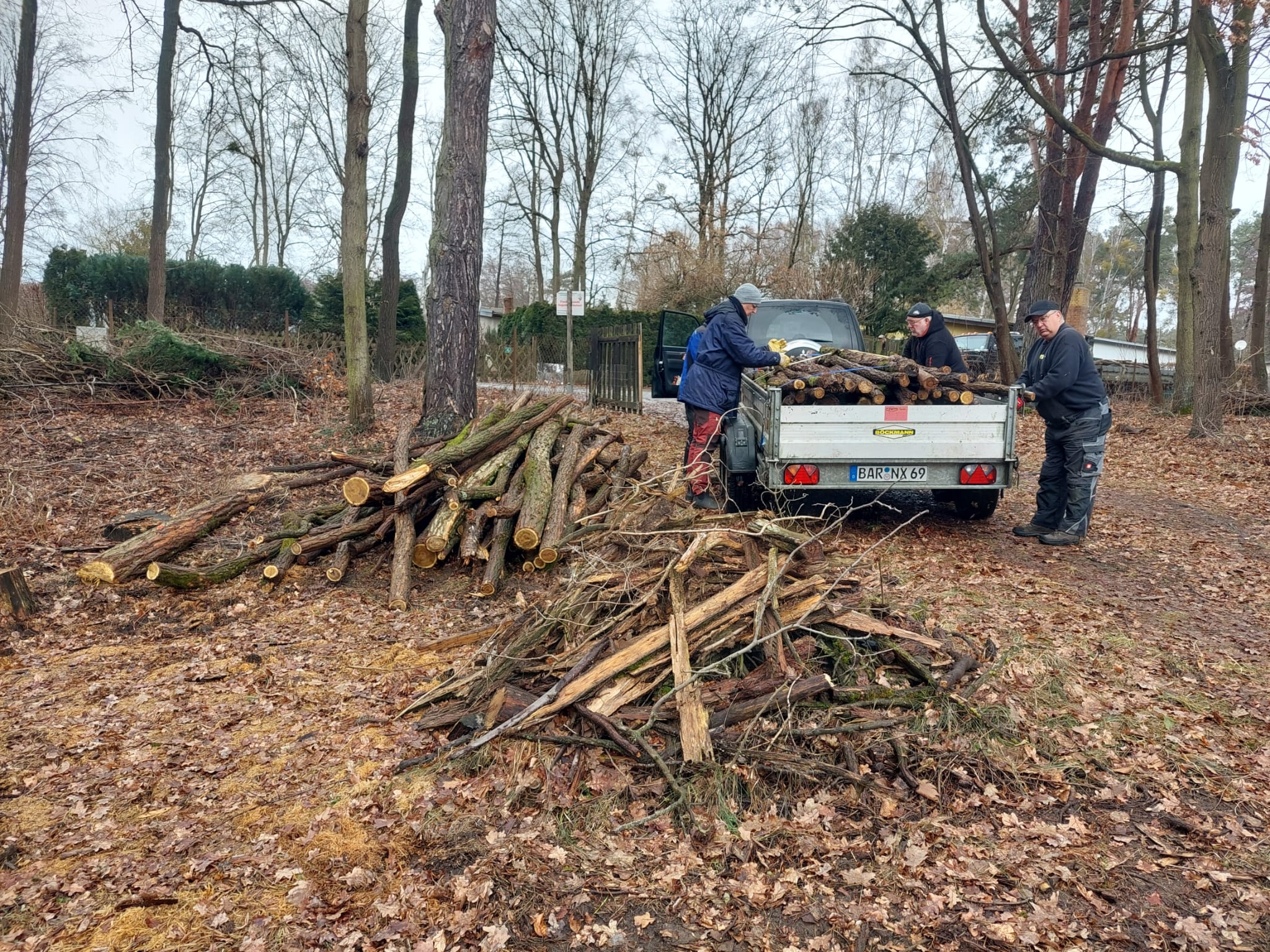 Nach der Stärkung wurden die Baumstämme noch ins Camp Finow transportiert und dort fachgerecht abgeladen.