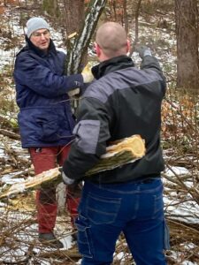 um im Choriner Forst wertvolles Rubinienholz für zukünftige Bauprojekte im Camp Finow zu bergen.