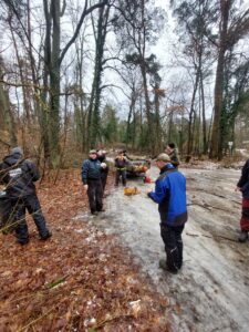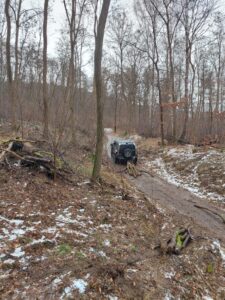 Klingt romantisch? Nun ja… sagen wir so: Die Waldwege präsentierten sich eher als Natureisbahn denn als Forststraße.